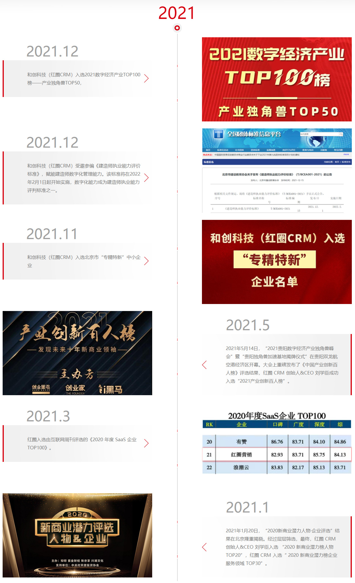 和創科技(紅圈CRM)入選2021數字經濟產業TOP100榜