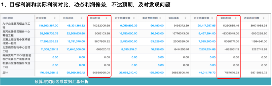 通過(guò)紅圈系統(tǒng),在過(guò)程中可以實(shí)時(shí)看到人、材、機(jī)等各項(xiàng)成本發(fā)生是否合理, 項(xiàng)目利潤(rùn)是否達(dá)預(yù)期,過(guò)程中出現(xiàn)風(fēng)險(xiǎn)能夠及時(shí)解決和控制,后期也可以對(duì)單個(gè)項(xiàng)目去做成本分析。