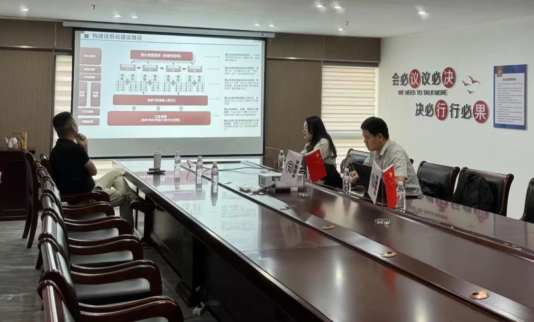 中明建設(shè)董事長趙明、財務(wù)部栗小芳、工程部王紅巖、投標部張丹峰出席會議,紅圈團隊銷售負責(zé)人孫林春、實施負責(zé)人蔣慧麗、運營負責(zé)人歐陽云祥一同參與。
