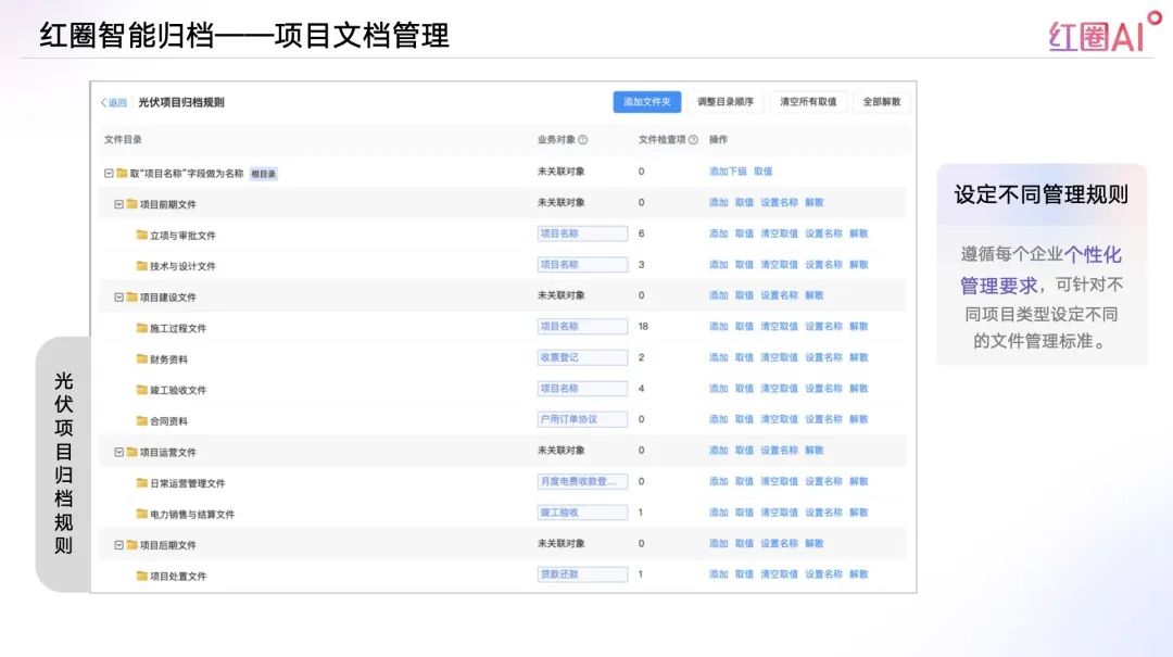 AI可根據(jù)遵循每個(gè)企業(yè)個(gè)性化管理要求,針對不同項(xiàng)目類型設(shè)定不同的文件管理標(biāo)準(zhǔn);