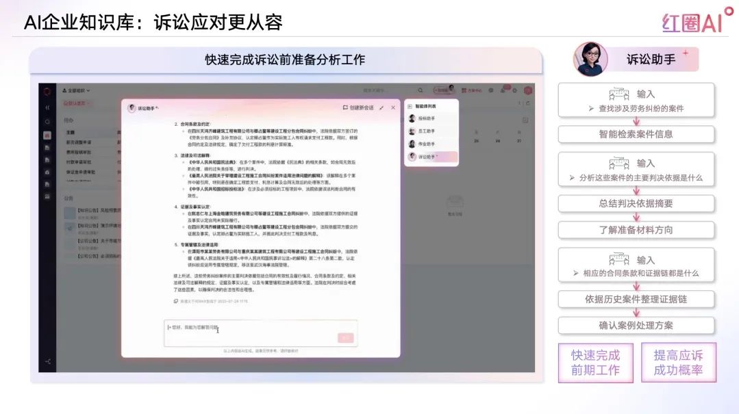 面對工程糾紛突發(fā)性強(qiáng)、資料復(fù)雜的挑戰(zhàn),紅圈AI構(gòu)建訴訟智庫,協(xié)助法務(wù)快速調(diào)閱判例、合同、律師函、內(nèi)部分析等核心資料,高效支撐應(yīng)訴與風(fēng)險(xiǎn)防控。