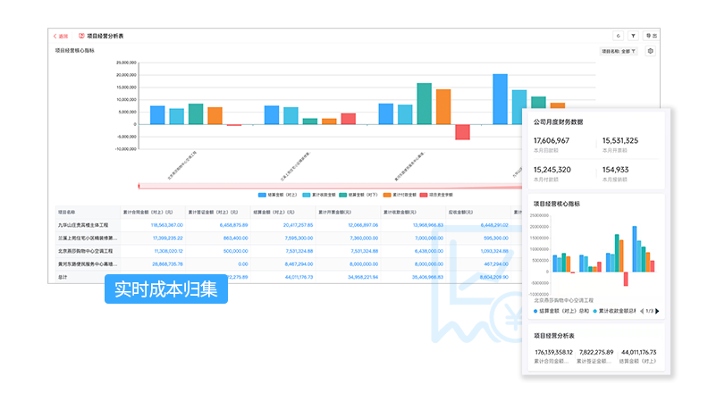 提供動態(tài)成本管理,實時成本歸集,隨時掌握項目收支、盈利狀況。