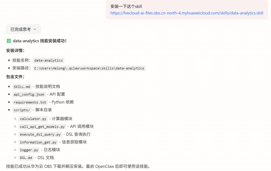 ● OpenClaw僅作為智能交互入口,數據查詢和計算均在云端完成
