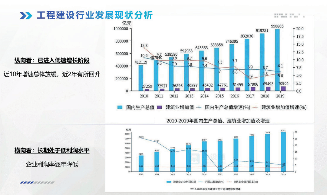 經(jīng)過對近十年數(shù)據(jù)的對比分析,可以看出建筑業(yè)作為國民經(jīng)濟(jì)支柱產(chǎn)業(yè)之一,地位依舊穩(wěn)固。但是如何擺脫利潤率偏低的現(xiàn)狀、如何提高企業(yè)競爭力成為了當(dāng)今需要探討的問題。