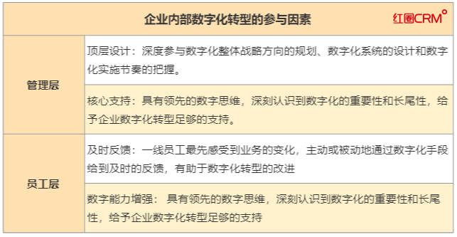 數字化轉型是一項需要長期持續且異常復雜的工作,對于管理層而言,其主要作用是轉型的頂層設計和推動支持。對于員工而言,需要增強自身的數字化相關能力并及時反饋。