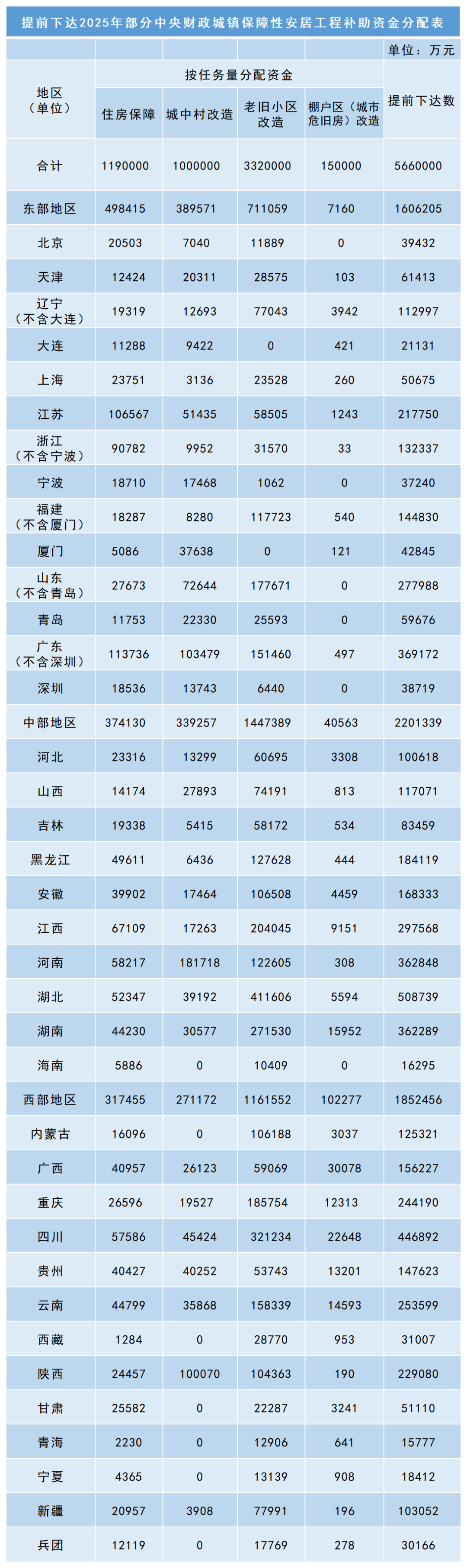提前下達(dá)2025年部分中央財(cái)政城鎮(zhèn)保障性安居工程補(bǔ)助資金分配表
