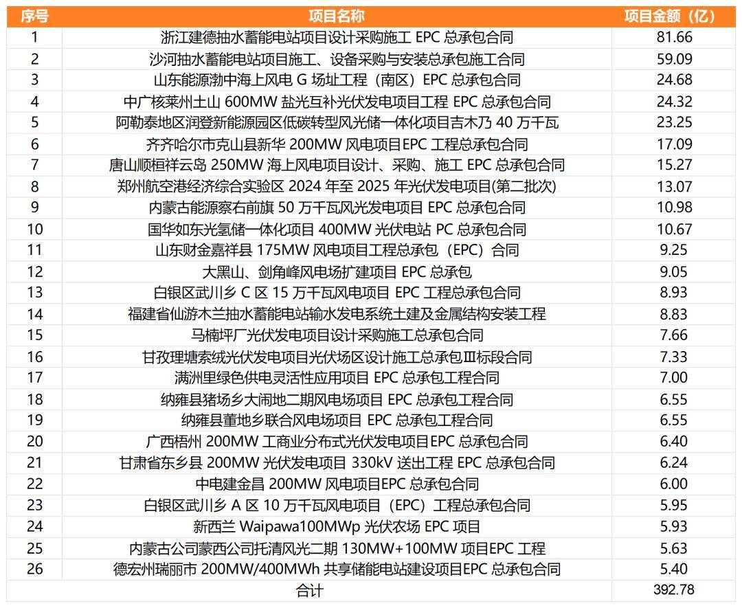其中,涉及風(fēng)電、光伏、儲能與抽水蓄能等項目共計26個,涉及金額392.78億。