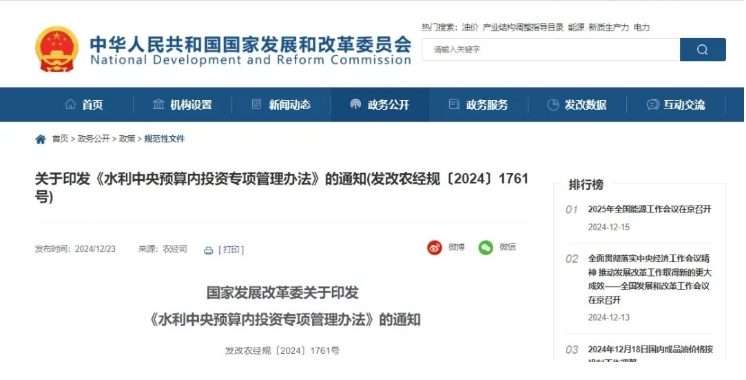 行業(yè)政策?|?國家發(fā)改委發(fā)文!加強(qiáng)水利中央預(yù)算內(nèi)投資專項(xiàng)管理!