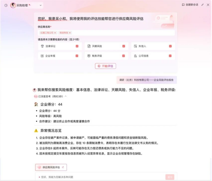 【采購助理Agent——供應(yīng)商風(fēng)險的“智能防火墻”】
