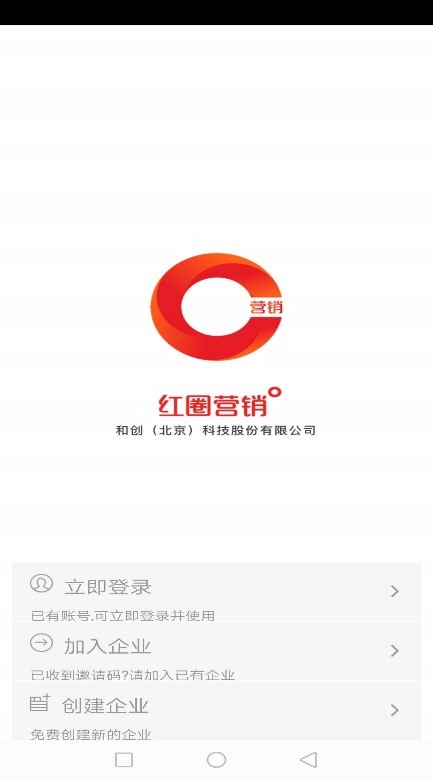安裝完畢打開APP,可以看到三種登錄方式:立即登錄、加入企業、創建企業;