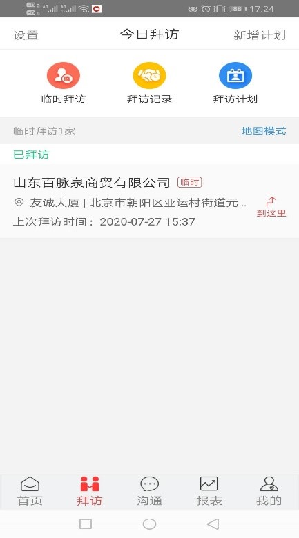 拜訪分為:臨時拜訪、拜訪記錄、拜訪計劃。