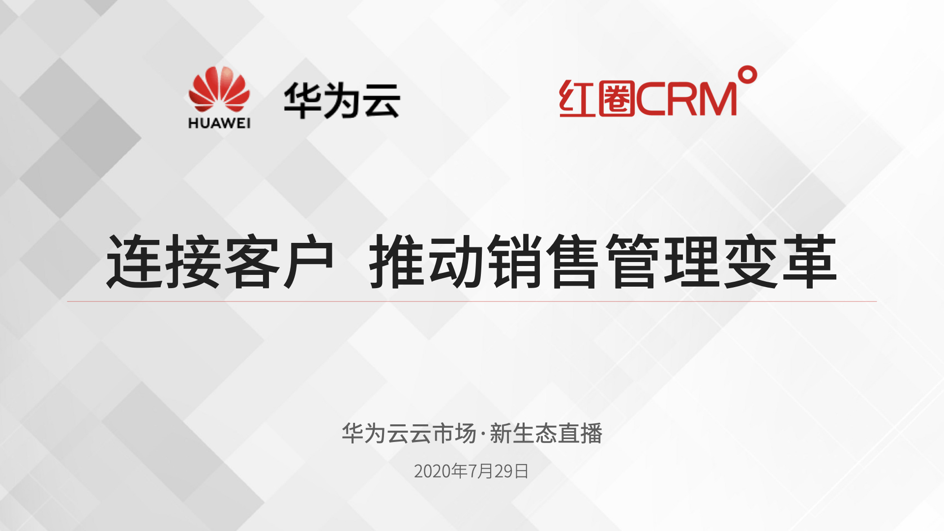 • 華為云云市場·新生態直播:連接客戶?推動銷售管理變革