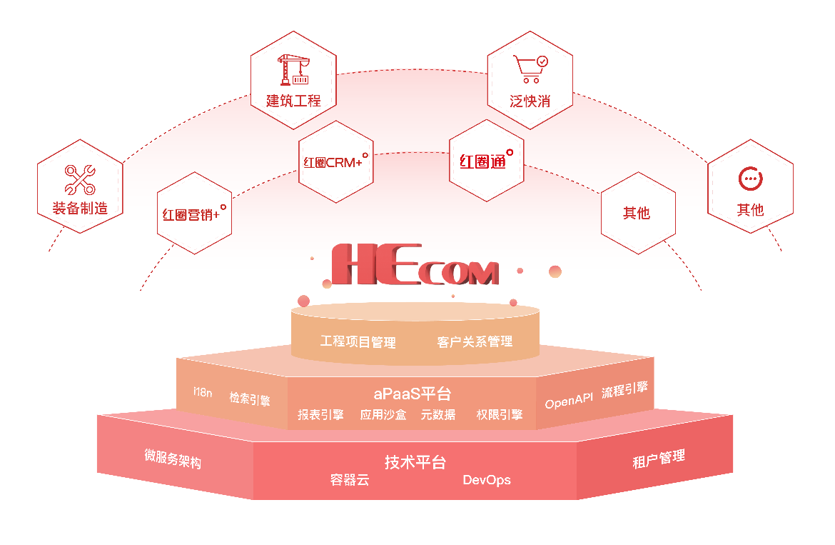 公司自主研發了“紅圈”系列 SaaS產品,主要包括紅圈 CRM+、紅圈營銷+、紅圈通等,覆蓋工程項目管理和客戶關系管理領域